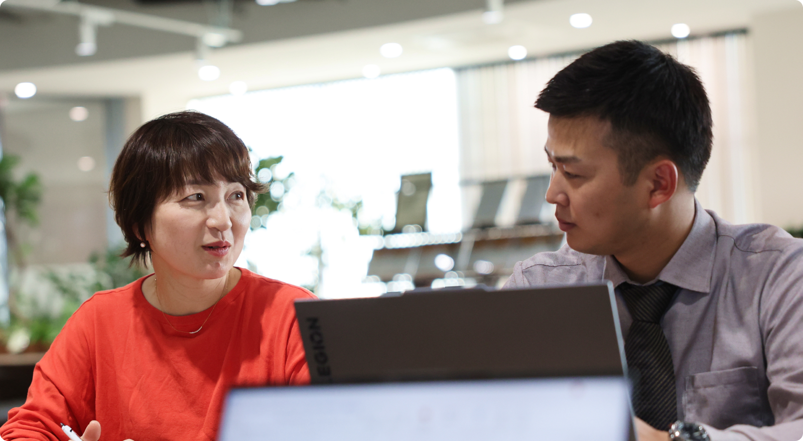 当社では、朝礼や定期的なミーティングや1on1面談を通じて、社員が意見交換しやすい環境を整えています。また、オープンなコミュニケーションを推奨しており、上司や同僚と自由に話し合える雰囲気があります。
